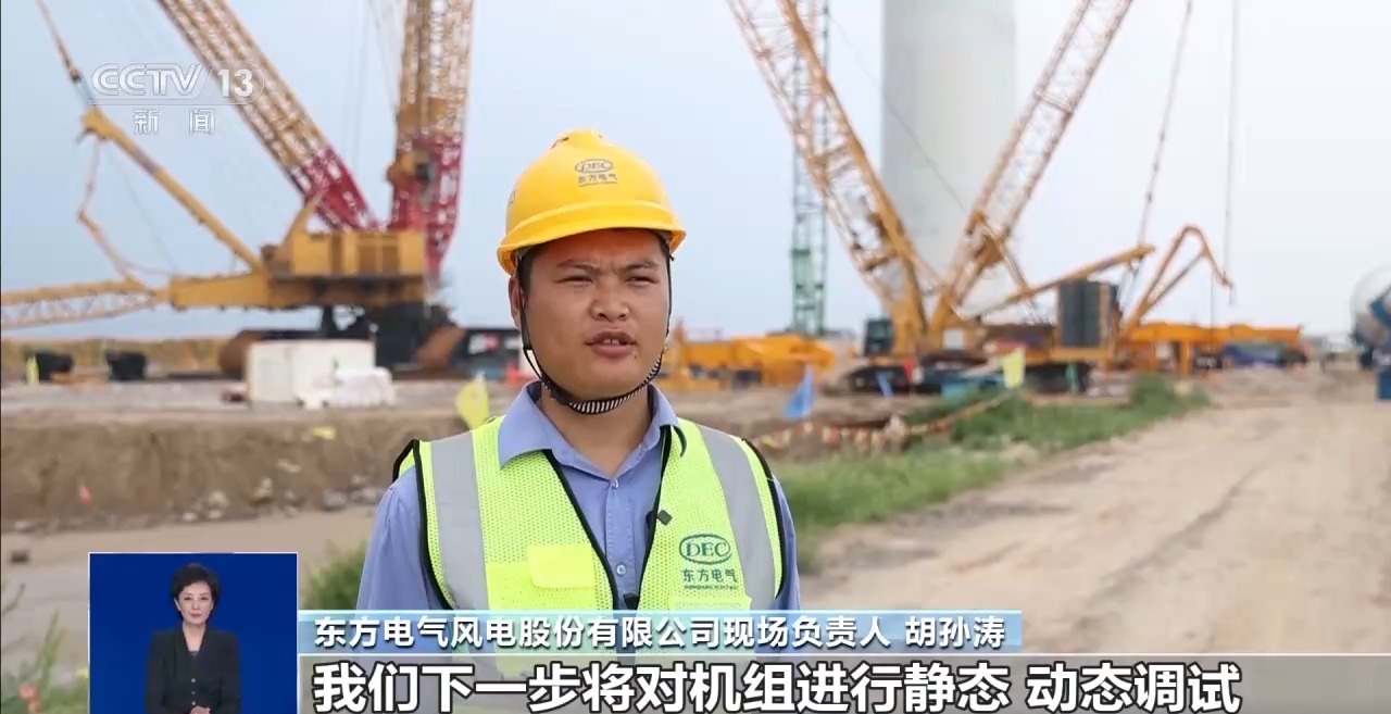 胡孙涛:机组吊装完成以后,我们下一步将对机组进行机组静、动态调试,最后完成机组并网,该机组并网以后,单机每年发电量1亿度,可供5.5万用户一年的用电需求。专家告诉记者,这次机组采用的新技术,可以在提升可靠性的同时,大幅压缩了整机体积与重量与18兆瓦海上风电机组相比,它的整体尺寸基本相当,重量仅增加10%。机组设计可覆盖20兆瓦至26兆瓦容量区间,能适配不同风区、不同海域的开发需求;按额定工况计算,它每旋转一圈可发出62度电,单机年发电量媲美一座传统小型风电场。